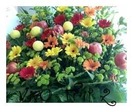 the ornament reflecting me. the flower stand with apples sticking out.