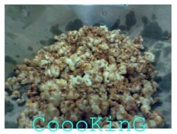 first heat the wok. make sure its hot before u put the oil. once hot, add oil and fry the corn seeds. coat it well with oil. (make sure the oil is enuf to coat the corn seed. best gauge is 5 table spoon oil to 2 handfuls corn seed). cover the wok and let it do its popping job! wen u dont hear the popping sound anymore, its ready. for the sugar coating, reduce the oil (if there is still alot). add the butter, let it melt and he sugar. the amount depends on how much u wan it. dont leave the sugar too long or it'll burn. add diced almonds if u like and pour the popcorns. make sure u off the heat before adding the popcorn. coat the popcorn well and serve once its cooled.