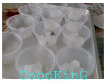 while waiting to boil, u can prepare the plastic cups/mangkuk. add nata de coco.